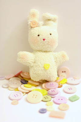 Here's the first one I ever made. A little bunny complete with a bunny tail and a heart-shaped belly button. I didn't really know what I was doing which explains why she has abnormal arms and lopsided eyes. (Shh... don't tell her!)
